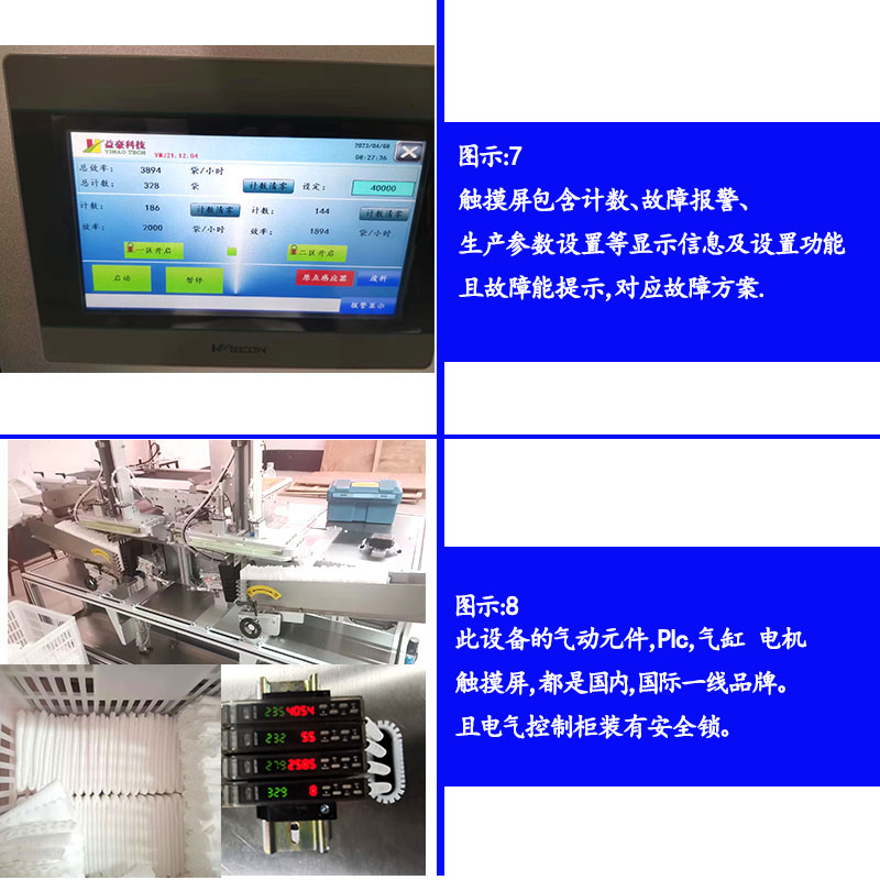 4.PLC+液晶觸摸屏控制操作,可在觸摸屏上輕松設置設備參數(shù),產(chǎn)量和出錯信息清晰直觀;