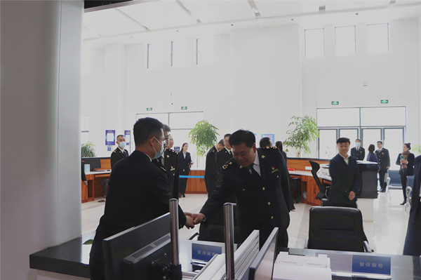 陳建東一行走進(jìn)徐州綜保區(qū)辦事服務(wù)大廳,親切慰問一線關(guān)員,參觀徐州綜保區(qū)展示廳,并詳細(xì)聽取了徐州綜保區(qū)開發(fā)建設(shè)、發(fā)展成效、跨境電商、重點(diǎn)項(xiàng)目等情況匯報(bào),并與綜保區(qū)管理辦負(fù)責(zé)人進(jìn)行了深入交流。