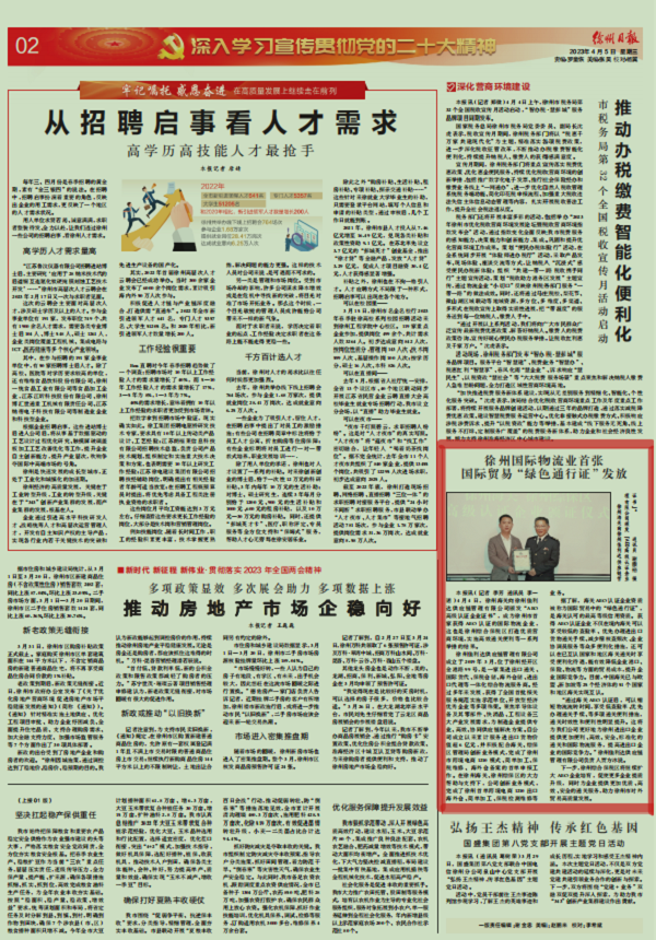 徐州國(guó)際物流業(yè)首張國(guó)際貿(mào)易“綠色通行證”發(fā)放