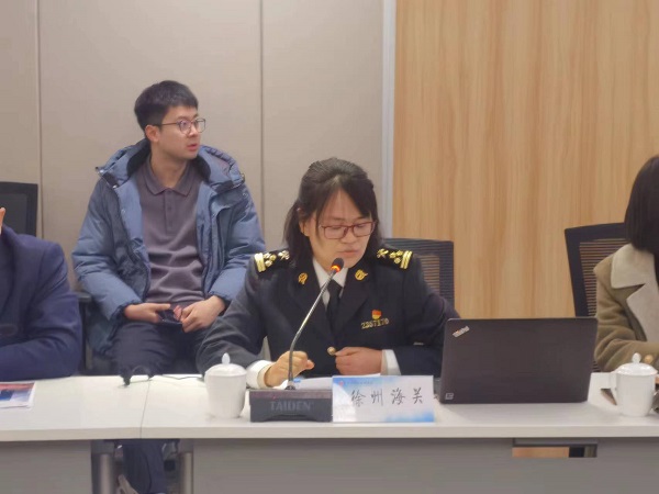 徐州海關(guān)關(guān)稅科王莉推介AEO高級(jí)認(rèn)證申報(bào)相關(guān)事項(xiàng),對(duì)企業(yè)代表提出的問題進(jìn)行答疑。