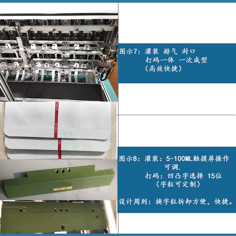 2.全自動(dòng)面膜機(jī): | 充填精華液,再對(duì)充填完精華液的面膜袋進(jìn)行封口和打碼。 |