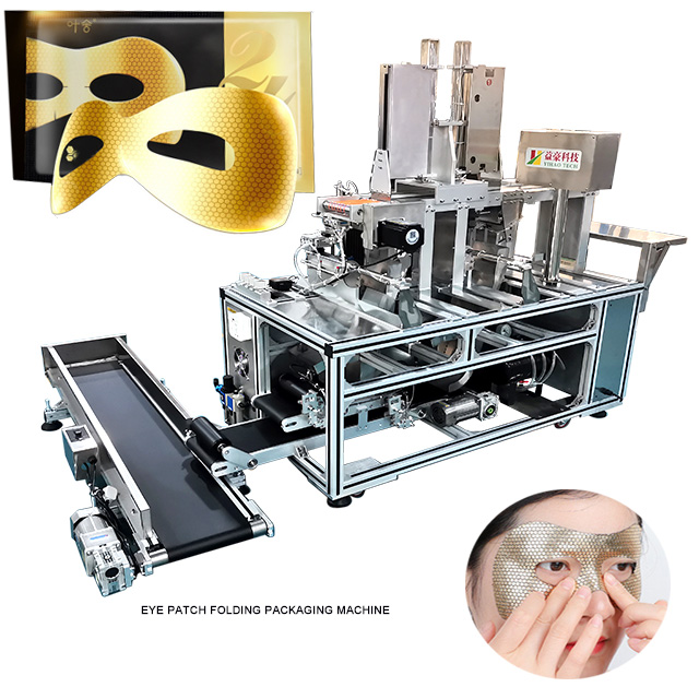5、自動壓袋:眼膜折棉機具有自動壓袋的功能,把面膜和袋子壓平,確保面膜包裝的美觀度,同時還方便工人整理,提高工作效率。