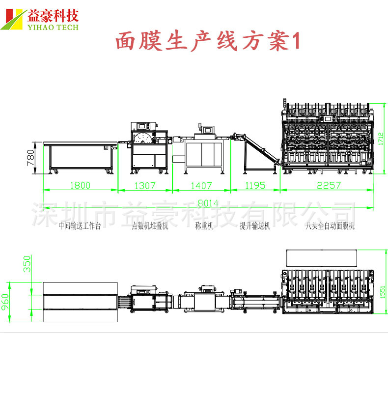 4.面膜灌裝機(jī)生產(chǎn)線(xiàn)工作流程:罐精華液 —封口—打生產(chǎn)日期 ——稱(chēng)重檢測(cè)  —產(chǎn)品堆疊(310片一疊)—包裝封盒—裝箱  —發(fā)貨。