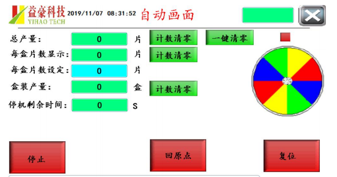 【盒裝產(chǎn)量】:以設(shè)定片數(shù)盒裝產(chǎn)量計(jì)數(shù)累加 1 計(jì)數(shù)。可以手動(dòng)清零也可以一鍵清零