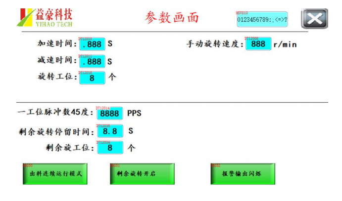 【剩余旋轉(zhuǎn)工位】:剩余旋轉(zhuǎn)開(kāi)啟時(shí)有效,假如轉(zhuǎn)一個(gè)工位是 45 度剩余旋轉(zhuǎn)工位就是 3 個(gè)工